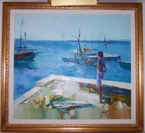 "Boy On A Pier" 1979 35 1/2 by 39 1/2 inches Acrylic on Canvas Owner very Motivated