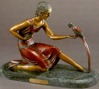 Girl With Parrot by D. Chiparus H=13.5, L=17.5