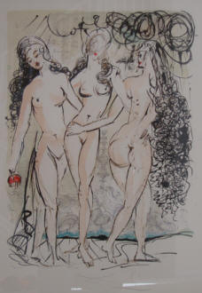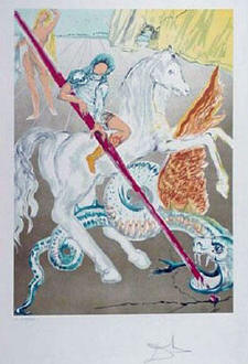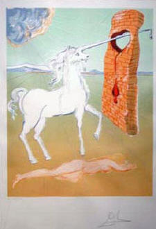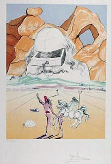 Dali and Gala escaped from Europe during World War II, spending 1940-48 in the United States. These were very important years for the artist. The Museum of Modern Art in New York gave Dali his first major retrospective exhibit in 1941. This was followed in 1942 by the publication of Dali's autobiography, The Secret Life of Salvador Dali. As Dali moved away from Surrealism and into his classic period, he began his series of 19 large canvases, many concerning scientific, historical or religious themes. Among the best known of these works are The Hallucinogenic Toreador, and The Discovery of America by Christopher Columbus in the museum's collection, and The Sacrament of the Last Supper in the collection of the National Gallery in Washington, D.C. In 1974, Dali opened the Teatro Museo in Figueres, Spain. This was followed by retrospectives in Paris and London at the end of the decade. After the death of his wife, Gala in 1982, Dali's health began to fail. It deteriorated further after he was burned in a fire in his home in Pubol in 1984. Two years later, a pace-maker was implanted. Much of this part of his life was spent in seclusion, first in Pubol and later in his apartments at Torre Galatea, adjacent to the Teatro Museo. Salvador Dali died on January 23, 1989 in Figueres from heart failure with respiratory complications. As an artist, Salvador Dali was not limited to a particular style or media. The body of his work, from early impressionist paintings through his transitional surrealist works, and into his classical period, reveals a constantly growing and evolving artist. Dali worked in all media, leaving behind a wealth of oils, water  colors, drawings, graphics, and sculptures, films, photographs, performance pieces, jewels and objects of all descriptions. As important, he left for posterity the permission to explore all aspects of one’s own life and to give them artistic expression.  Whether working from pure inspiration or on a commissioned illustration, Dali's matchless insight and symbolic complexity are apparent. Above all, Dali was a superb draftsman. His excellence as a creative artist will always set a standard for the art of the twentieth century