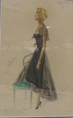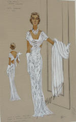 Midriff Cutout Original Drawing White dress with silver: Original Drawing from 1947 movie B.F.'s Daughter staring Barbara Stanwyek.. POR |