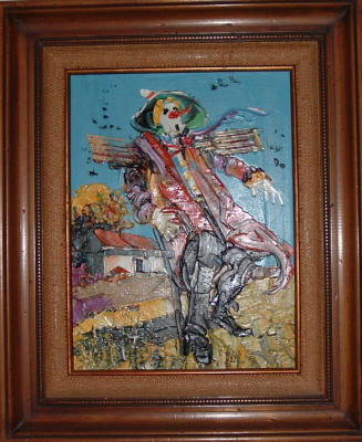 paints rapidly, "the fastest palette knife painter in the world." Working