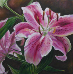 Pink Lillies Oil on Canvas, 30 by 40 inches POR