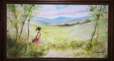 Girl in the Field Numbered "53" Late 60's ,Early 70's Original Oil on Canvas, 48 by 24 inches $40,000