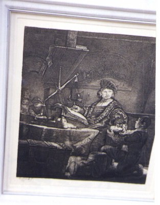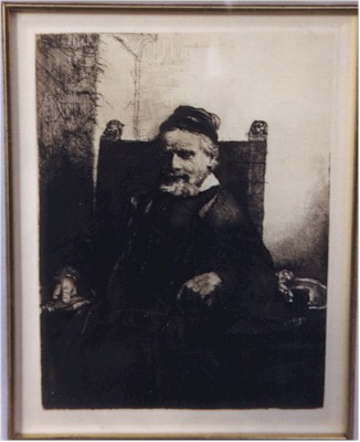 fine early impression from the original plate itself." ___________________________________________________________ References indicate that Amand-Durand's skill was already known to the experts of the 19th and early 29th centuries. George Duplessis, Conservator of the cabinet de Estampes in 1855, so appreciated the genius of Durand that he had his work published in books which now belong to the Bibliotheque National in France. It was Amand-Durand who was used as the master etcher in such books by Duplessis as Historie de la Gravure, an anthology of European engravings so valuable that it is kept under lock and key in most noted art libraries. Thus, what we get is a master duplicating a master 200 years later. ____________________________________________ " A fine impression from a fine copy is nearer to the thought of a Rembrandt than an impression taken directly from one of his coppers when they had been worn by too much printing." Etching and Etchers ___________________________________________________________ Durand, like Rembrandt often did, sold his etching for book illustrations until his death in 1905. At that time they were purchased by the Dominique Vincent family. who continued to see them as book engravings to the Bibliotheque National and the Louvre Museum as wonderful and exact duplications of the original states or Rembrandt's etching. Sporadically, though, they would also sell them to interested private parties and dealers, and it was this that caused whispered stories to spread among the entire art community! ____________________________________________ " most of these copies may be dismissed without discussion; they are either so distinct from Rembrandt in manner and so amateurish in style that they could never cause the collector the uneasiness that might well be caused by a faded and framed Amand-Durand." A catalogue of Rembrandt Etchings ____________________________________________