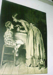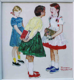 "The Checkup" Oil on Board 11 1/4 by 10 1/4 inches Study for the Saturday Evening Post cover of September, 1957. Reproduced as #485a in "Norman Rockwell" A Definitive Catalog Vol. #1 by Laurie Norton Moffatt, The Norman Rockwell Museum at Stockbridge.Note: It is listed on Page 215 as Girl Missing Tooth, "The Checkup" SOLD |