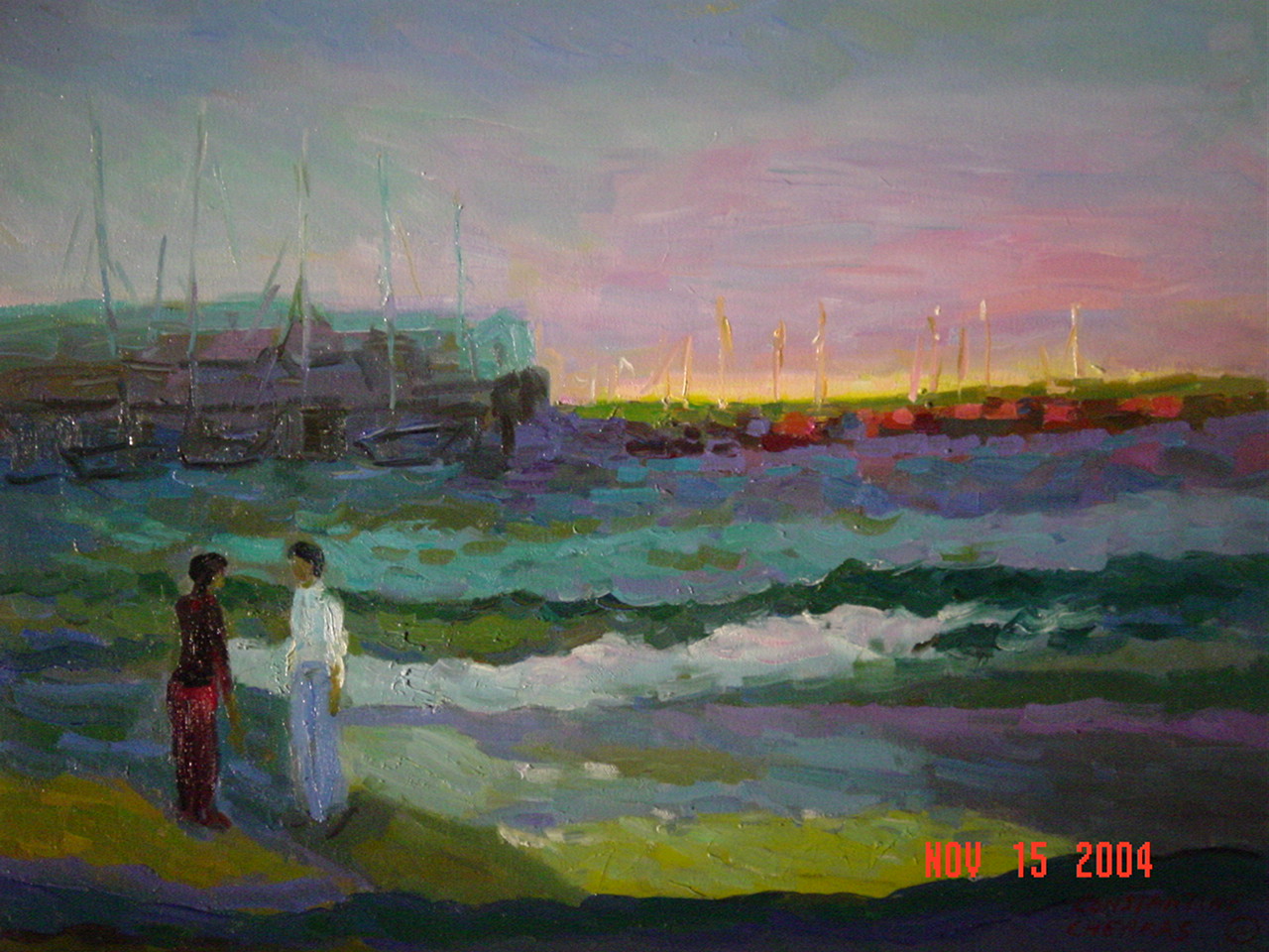 Menton Harbor | Original Oil on Canvas 18 by 24 inches |