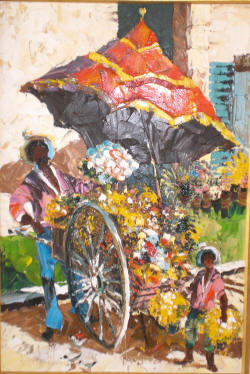 The Flower Sellers 1971, Signed , Acrylic on Board, 24 by 36 inches POR |