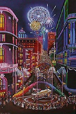 Born in Pittsburgh, Pennsylvania, Melanie Taylor Kent was raised and has spent most of her life in Southern California. She won her first National Art Competition at age 12 and studied with several celebrated artists. Recently her artwork has been licensed to Warner Bros., The Walt Disney Corporation and Hanna-Barbera. Melanie Taylor Kent is one of the most treasured and collected painters living and painting today. In just a few years she has achieved recognition as "the artist of famous celebrations, streets, and landmarks of America". She combines her art talent and love of history with a whimsical imagination to produce images of brilliant and vivid colors, yet informative because of Melanie's attention to detail and quest for authenticity. Melanie's serigraphs are noted for the famous personalities that delight and challenge collectors to identify them.